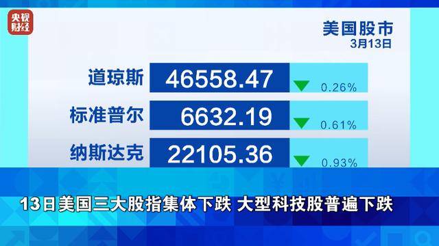 13日美国三大股指集体下跌 大型科技股普遍下跌